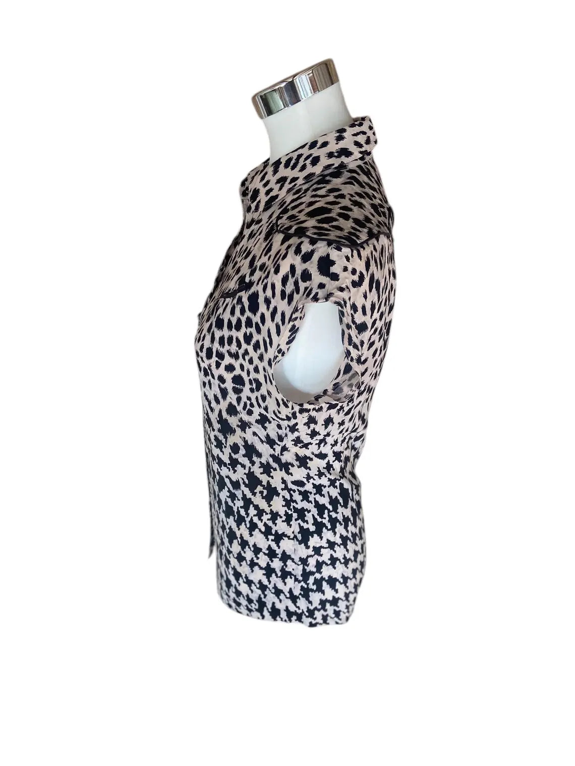 Cowboy style shirt from the English firm Alexander McQueen. It is a two-tone model in black and white, with button fastening. It is 100% silk, one button is missing and needs to be replaced. The size is equivalent to an international S.
