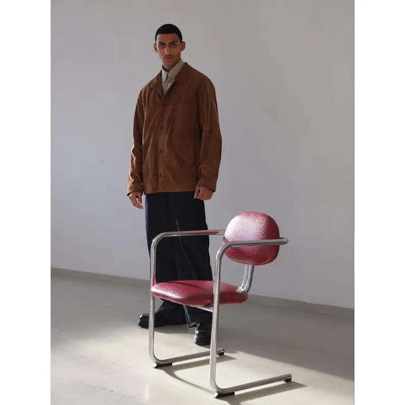 It features a central button closure, side pockets, and a practical front pocket at the collar. Made from 100% sheepskin, it guarantees softness, durability, and spectacular ageing: it is a garment that improves with time.