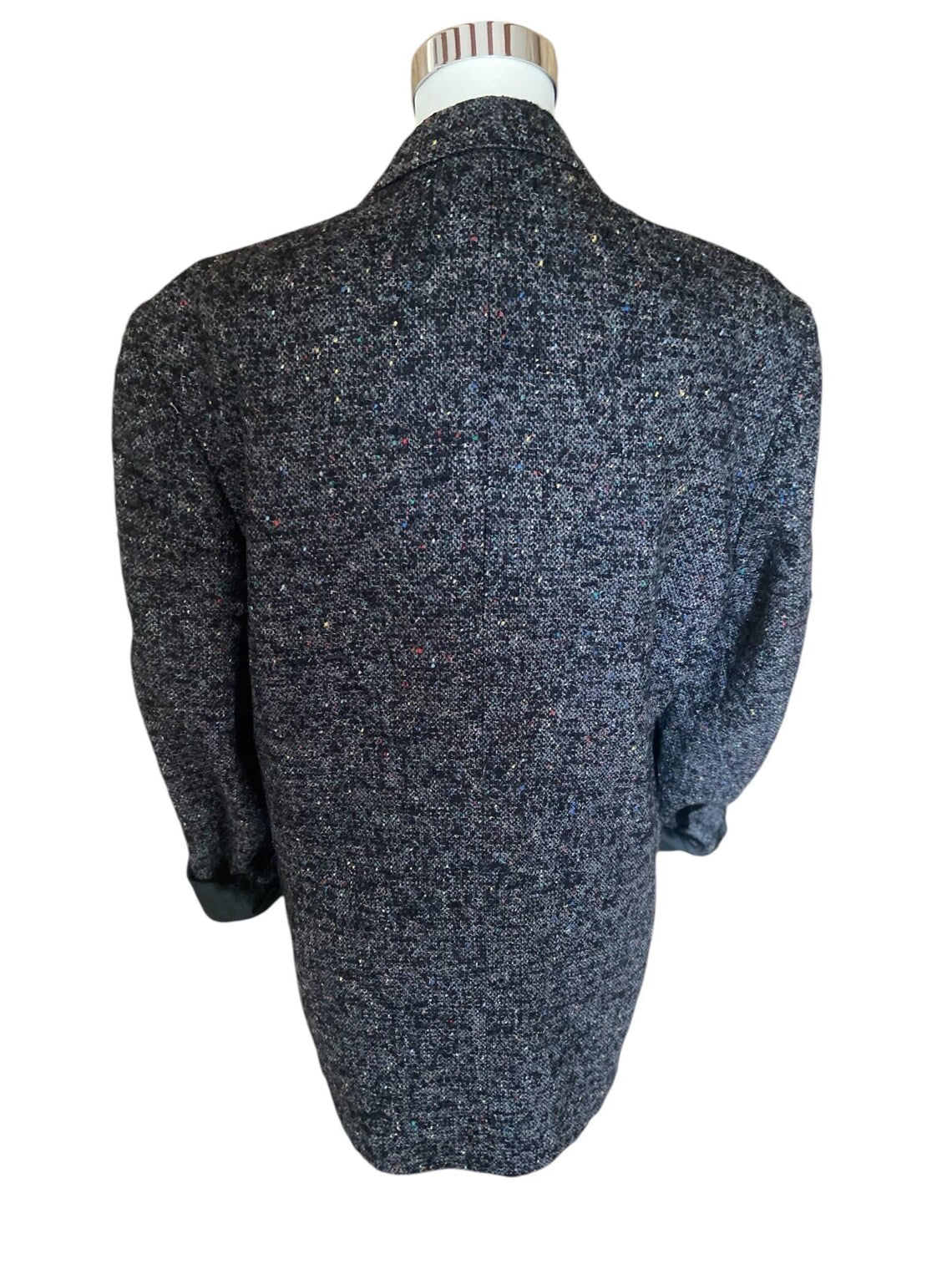 The fabric is wool in shades of grey but with colour in the weave or grey, see photos.